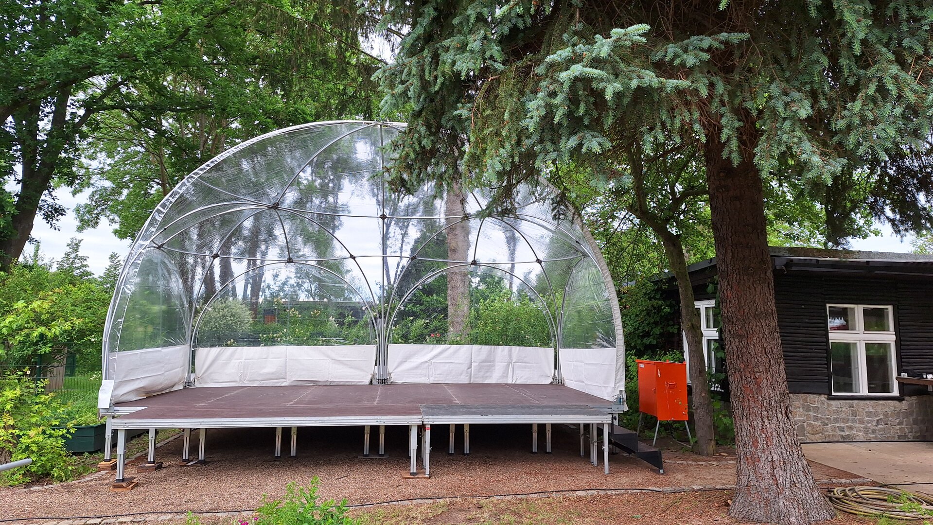 Unsere transparenten Multi-Pavillons sind der absolute Hingucker auf jeder Feier! Mit ihrem außergewöhnlichen Design verleihen sie deiner Party nicht nur einen Hauch von Eleganz, sondern schaffen auch eine einzigartige Atmosphäre, die deine Gäste begeistern wird. Egal ob bei Tageslicht oder stimmungsvollem Abendlicht – unsere Zelte sorgen dafür, dass jede Veranstaltung zu etwas ganz Besonderem wird. Lass uns gemeinsam deine Feier unvergesslich machen!